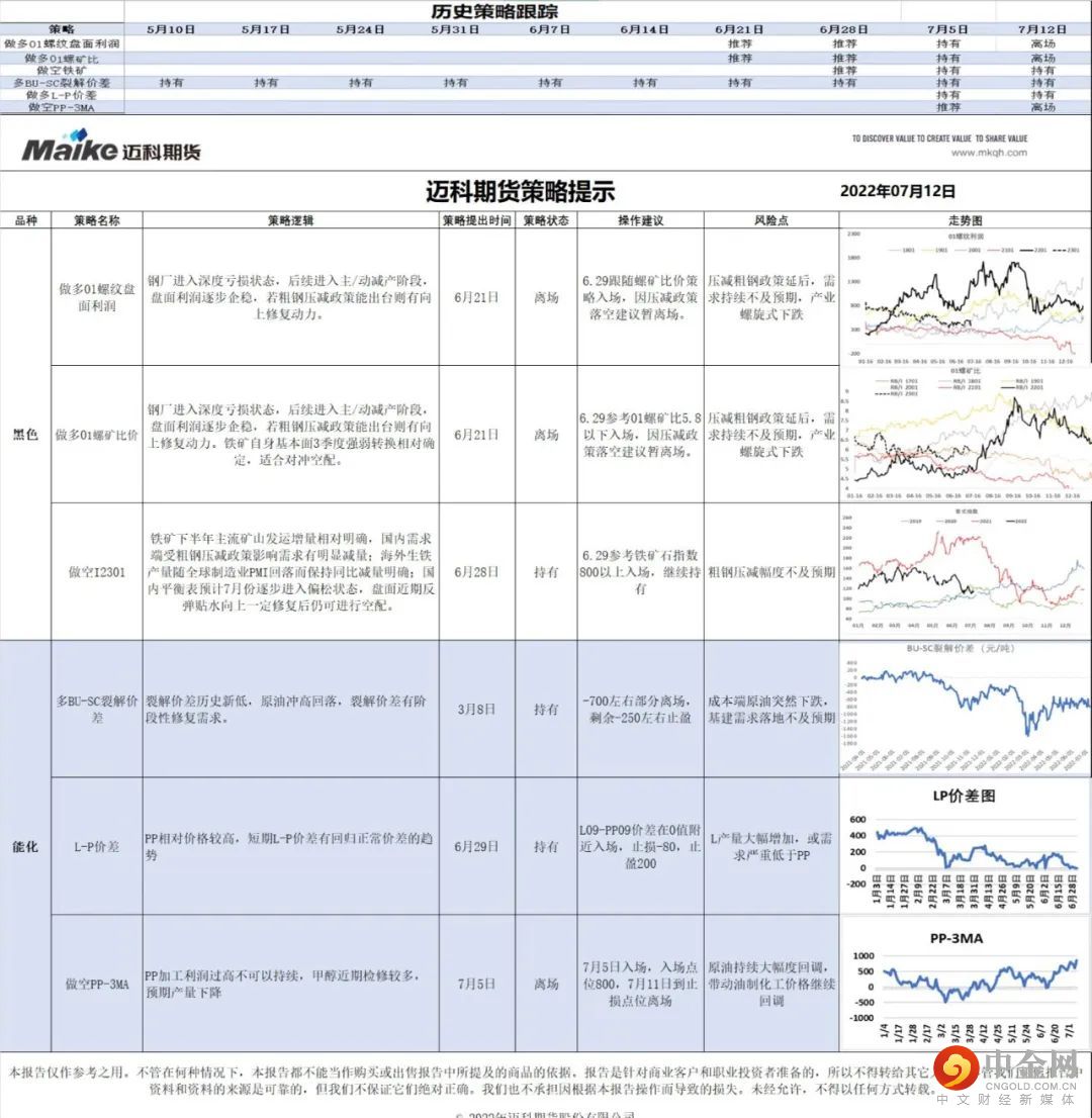 迈科期货策略提示 | 2022.07.13