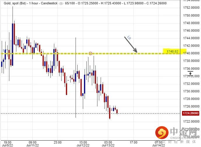 可以部署在$1,740美元左右建立淡仓盘,短线看淡金价一线至$1,703美元水平后止赚,止损在$1,748美元。