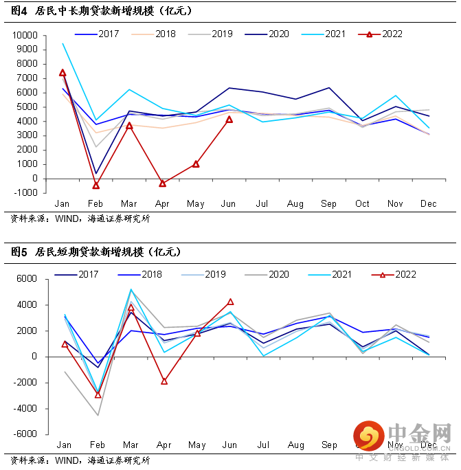 企业部门需求释放:中长贷大幅多增,票据融资同比转负。6月企业贷款新增2.2万亿,同比多增7525亿元。虽然总量上同比多增的幅度与5月相差不多,但结构上较此前有明显反转,体现为中长贷同比多增6130亿元,而票据融资同比少增近2000亿元。结构转变意味着6月的实体信贷需求转暖,预计前期受抑制的融资需求集中释放是主要原因,接下来信贷结构改善的持续性仍需观察。