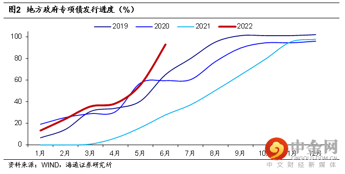政府债净融资如期多增,专项债发行进度已完成93%。6月政府债券净融资高达1.6万亿元,同比多增8676亿元,主要是稳增长政策下地方政府专项债冲量。从新增发行看,6月新增地方专项债发行1.36万亿,今年累计新发额度已达到3.4万亿,完成全年下达下限额的93%。