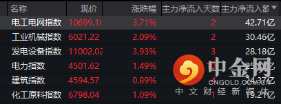 其中,板块涨幅高达3.47%的电气设备板块掀起涨停潮,新特电气、久盛电器20cm涨停,通灵股份、南网科技、泰胜风能、中信博等涨幅均超过10%。