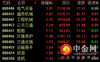 涨跌方面,电气设备、通用机械、工程机械、公共交通等内容涨幅居前,市场活跃内容明显增加。