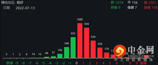 个股方面,赚钱效应开始回暖,个股涨多跌少,超3300家个股上涨,108家个股涨停。