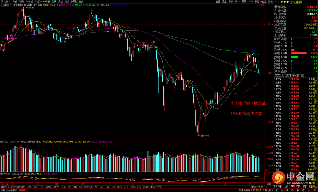 【技术分析】沪深两市昨日横盘震荡,市场在连跌三天后开始尝试在半年线附近企稳,但市场成交量出现明显的连续回落,是资金对当下市场不确定性犹豫的表现,后续仍需进一步等待50天均线的抬高给市场迎来支撑力。