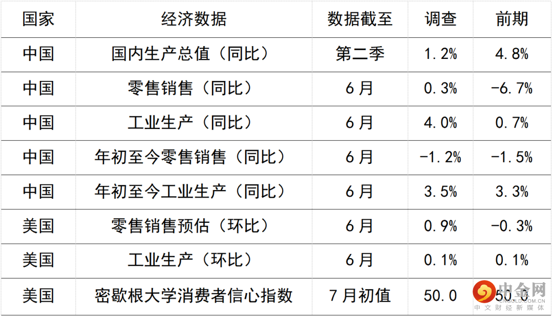 今日公布的经济数据 (2022年7月15日)