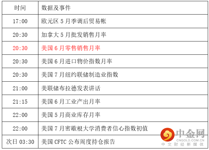 今日市场消息面相对较多,晚间美盘时段将会公布美国零售销售数据,作为美联储政策制定者青睐的核心指标,零售数据的好坏有助于市场提前预判美联储7月的加息幅度,此外,美联储最鹰派的代表人物布拉德将发表讲话,若晚间布拉德再放鹰派言论,金价恐面临下行风险。投资者需密切关注具体数据对黄金价格产生的影响,把握盘中交易机会。
