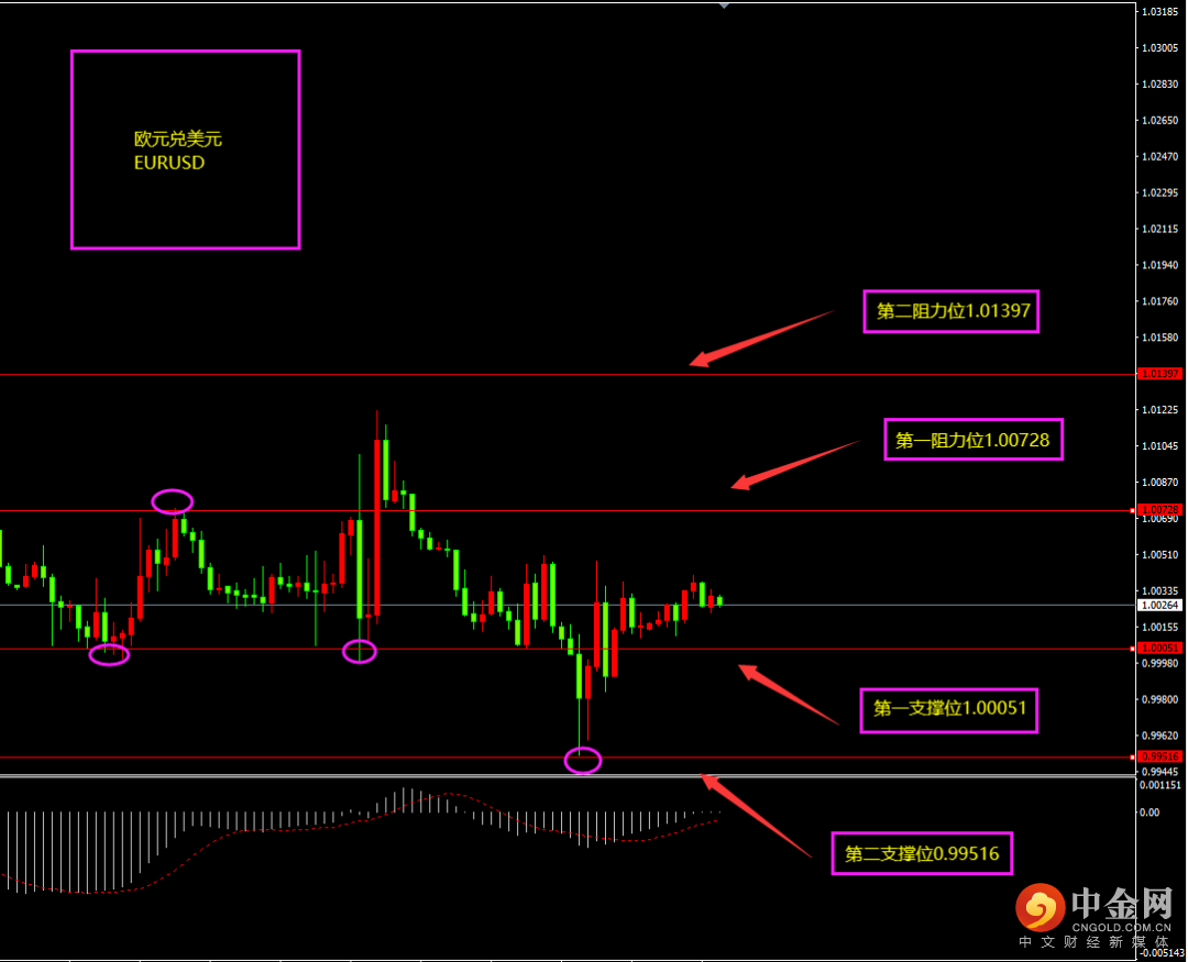 天图欧元收阴线,价格继续回落,空头依然强劲,短期MACD位于0轴之下,空头占优,而底部无大阳线筑底,多头不强,日内更多以震荡以及震荡下行为主?小时图欧元有连续阳线冲高,但上行力度较弱,多头并非强势,短期MACD位于0轴附近,多空低位博弈,日内继续以逢高看空为主?(大阳线不出,多单不入)