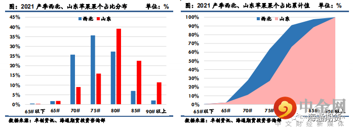 68%,甘肃产区入库量在70%左右,山西入库量减少3成,入库比例明显低于2019和2020