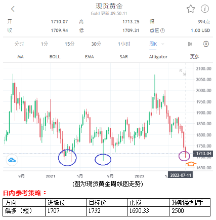 美元在美联储升息预期支撑下保持强势,削弱黄金的魅力,黄金昨日一度下跌到 15 个月低点,跌破1700关口,所幸在美元回弱下,黄金站回1700关口上。今日报载,全球通胀持续暴冲,促使多国央行猛踩升息油门,加拿大央行已率先七大工业国(G7)一口气升息100个基点,智利意外升息75个基点,新加坡和菲律宾14日也都召开临时决策会议,宣布紧缩货币政策,且各国升息行动仍未结束,瑞典、澳洲及韩国都将继续升息。所以,这样的内容当然不利黄金,不过,在多国央行转向快速升息下,经济衰退的机会越来越大,加上Omicron新冠亚型变异株BA.5迅速扩散,不仅在美国各地掀起新一波疫情,日本、韩国、澳洲及新西兰的确诊数也都激增,更让经济蒙尘。所以,弱势黄金仍具利基。