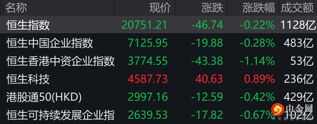 【港股】港股方面,香港恒生指数收跌0.22%,恒生科技指数涨0.89%,电力股、内房股、内险股跌幅居前,中国平安、大唐发电跌超5%,华润电力、龙湖集团跌超4%。大型科技股多数上涨,比亚迪电子涨超6%,比亚迪股份涨超5%,京东涨超2%,美团、阿里巴巴、网易、百度均涨超1%。火币科技跌超9%,天齐锂业收跌逾3%。