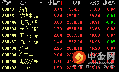 涨跌方面,船舶、矿物制品、电气设备、医疗保健、工业机械等内容涨幅居前。