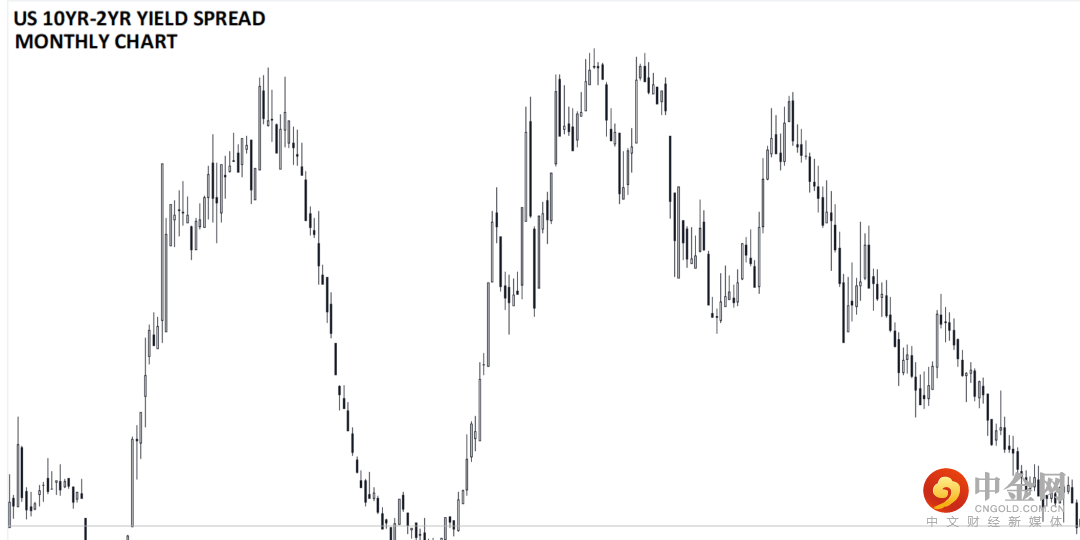 短期债券收益率曲线的走势拥有令人信服的解释,长期收益率本周的走势可以说是不详之兆:10年期美债收益率在美国CPI报告发布后基本走平,推动10年期-2年期收益率差低至-25个基点,为2000年四季度以来倒挂情况最严重的一次。