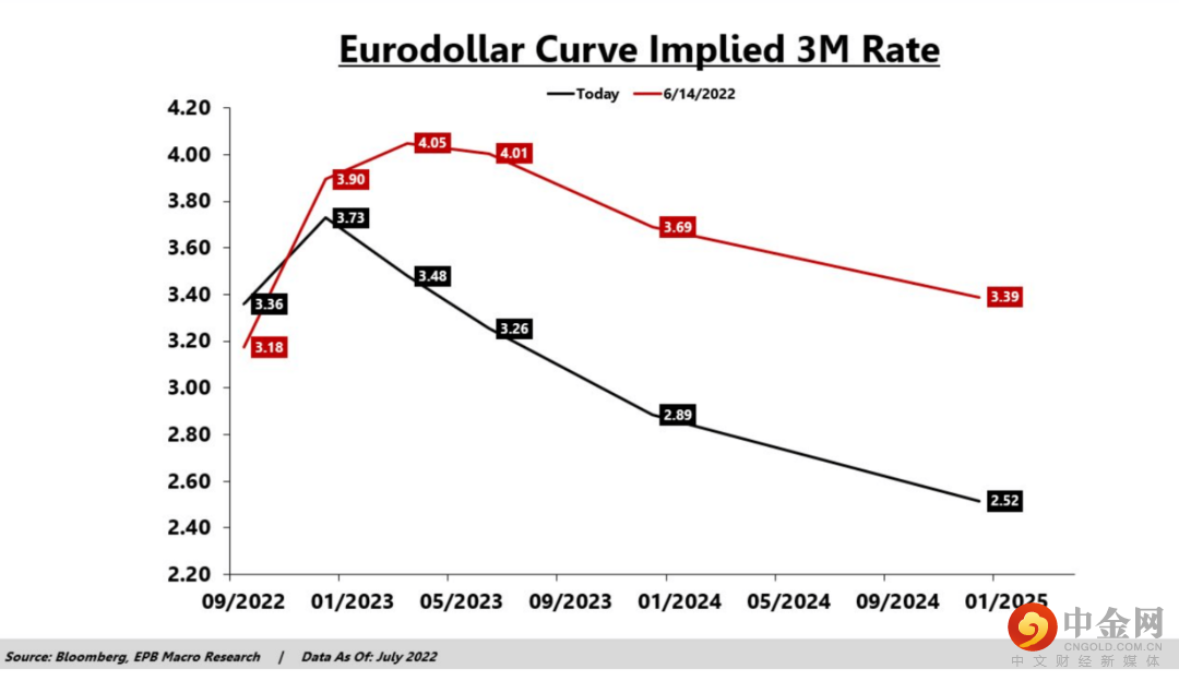 值得注意的是,市场同样暗示,“通胀洪峰”或已过。从5年期和5年期远期盈亏平衡来看,交易者目前预测美国通胀率达到美联储的2%目标。原因可能是美联储对通胀的积极响应,也可能是期待已久的、有关“过渡性”扰动的警告。联邦基金期货市场交易者现在计入超过80个点子FOMC在2023年降息的前景: