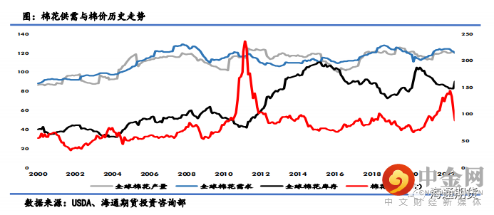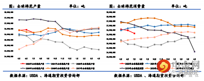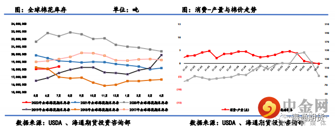 现全球棉花消费小于产量的预测,期末库存也随之调增。