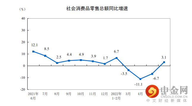 7月15日,国家统计局公布数据显示,6月份,社会消费品零售总额38742亿元,同比增长3.1%。其中,除汽车以外的消费品零售额34192亿元,增长1.8%。上半年,社会消费品零售总额210432亿元,同比下降0.7%。其中,除汽车以外的消费品零售额189251亿元,下降0.1%。(见图8)