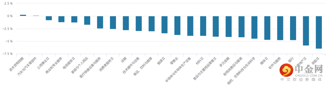 从行业板块表现来看,本周多数板块出现调整,仅汽车与汽车零部件小幅上涨,而保险、房地产、银行板块等表现相对较弱。(见图2)