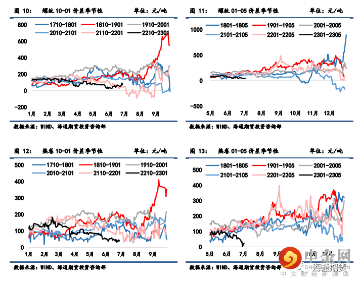 卷盘面主力合约价格表现略弱于螺纹钢,10 合约卷螺差从 10 回落至-13 元/吨;