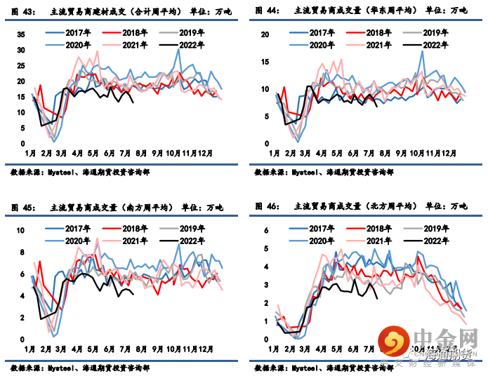 需求:建材贸易商成交和螺纹钢、热卷表观消费量环比再度走弱,自
