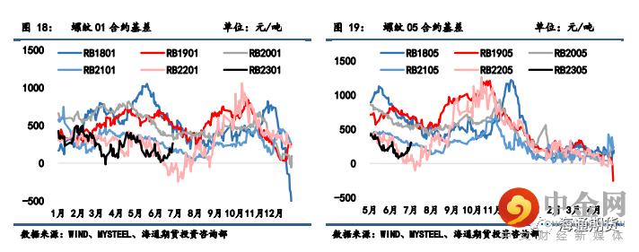 螺纹 01 合约基差从 115 扩大至 263 元/吨,螺纹 05 合约基差从 169 扩大至 308 元/吨,螺纹 10