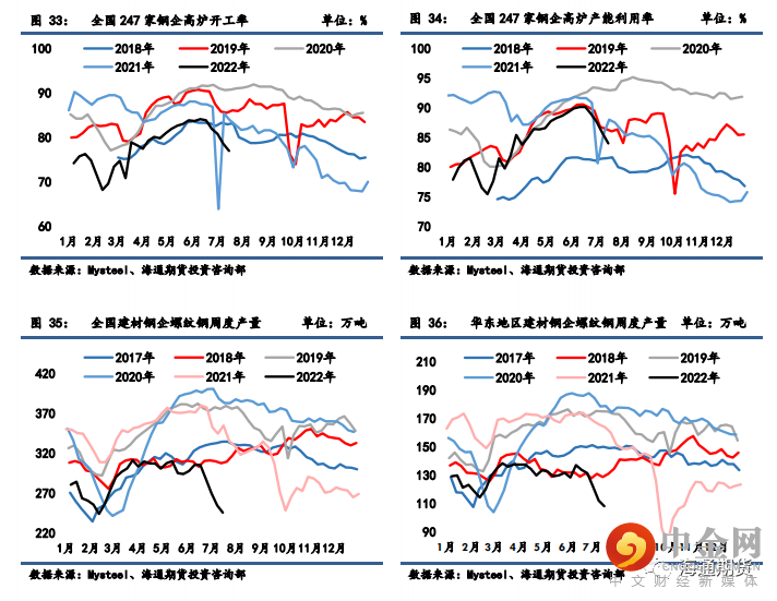 高炉开工率和产能利用率周环比均继续走弱;