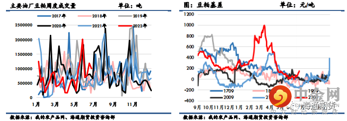 丰产预期以及宏观层面通胀背景下美联储政策的调整而展开,美豆价格中枢上移后宽幅震荡调整;国内连粕盘面跟随美豆成本端走势,现货及基差则沿着“利润-库存”逻辑运行,上半年走出