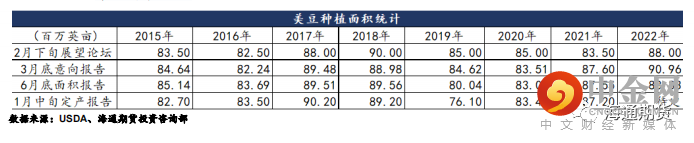 意向种植面积为 9095.5 万英亩,同比增长 376 万英亩,远高于市场此前预估的 8872