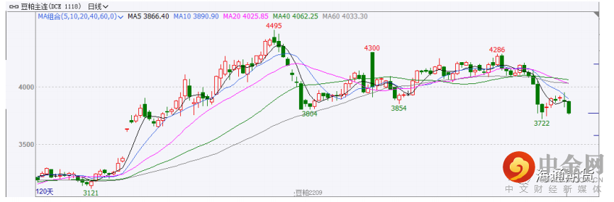 美玉米的播种缓慢,市场担忧会有更多耕地被改种大豆,美豆期价进入下行通道,至