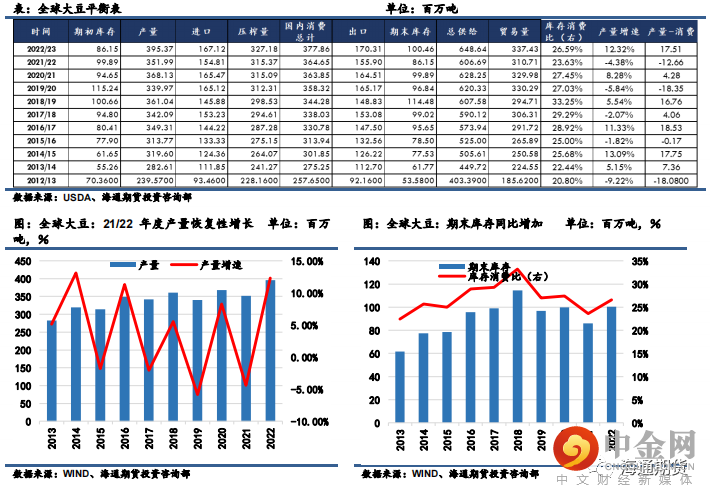 综合来看,全球大豆库存消费