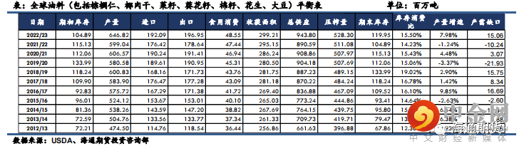 综合来看,2022/23 年度全球油料供需从上一年度偏紧的状态有所缓解。