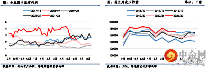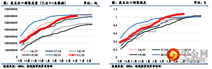 下半年国内油厂采购远月大豆节奏偏慢,同时受中国需求下降影响,截至 2022 年