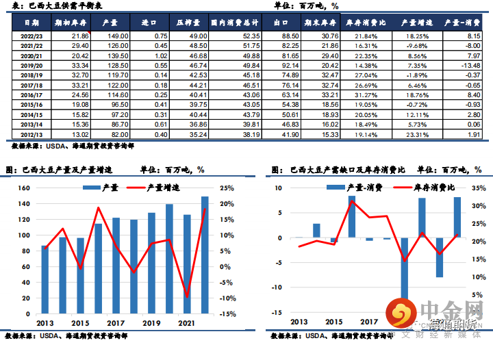 综上所述,旧作南美产量因受到拉尼娜的影响而大幅减产,令全球大豆供应呈现紧