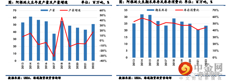 大豆产量 1.49 亿吨,同比增加 2300 万吨,增加 18.25%,创下历史最高位置,阿根廷大