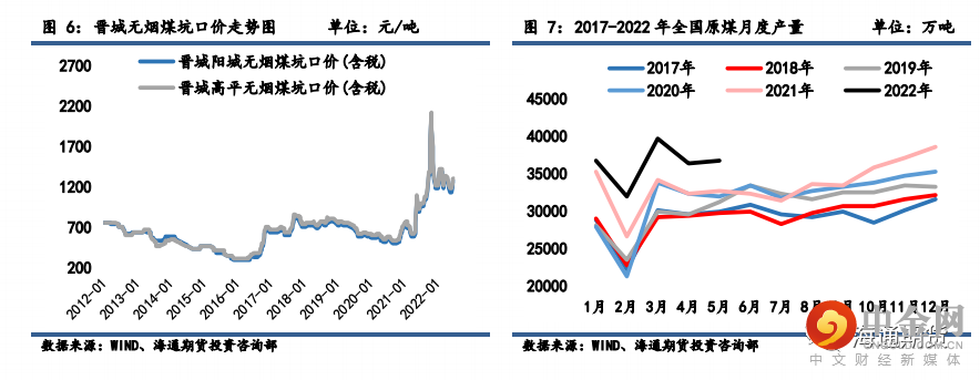 从实际情况来看,2022 年 1-5 月全国原煤产量为