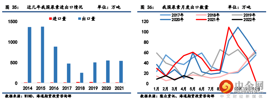 进入 2022 年后法检政策继续执行,我国尿素出口量大幅下滑,数据显示,2022 年 1-5