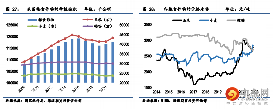 2021 年虽然总耕种面积增加 1293 万亩,但玉米因价格较高,播种面积增加