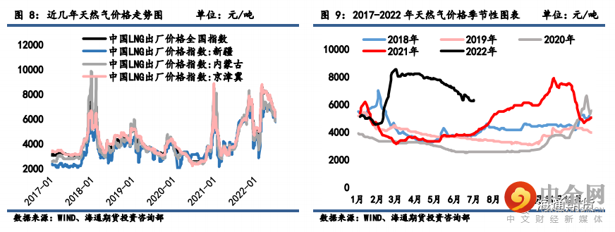 量相对较低,受国际价格影响相对较弱,但 3 月受俄乌战争影响,中国 LNG 出厂价格达到 8200 元/