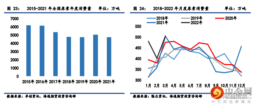 出口主要集中在下半年,2018 年至 2021 年的下半年尿素出口占比均超过 50%,因此出口对尿素需求