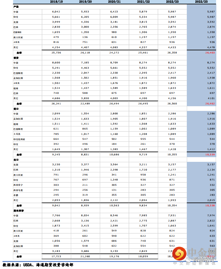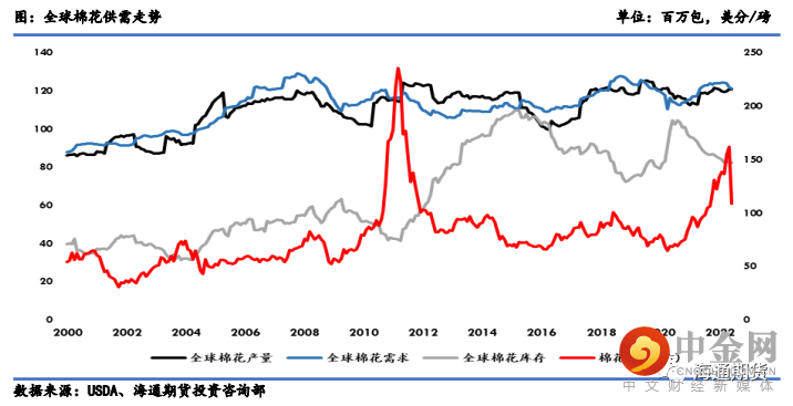 今年最重要的变化端就是美国农业部下调了 22/23 年棉花全球需求,上调了全球棉