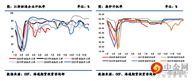 至 62.6%,江浙织机开机率降至 56.8%,江浙加弹开机率降至 59%,这在近些年都十分少
