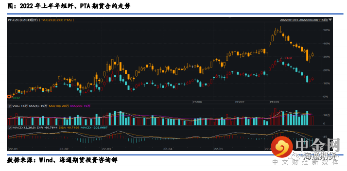 上半年同为纺织重要原材料的涤纶短纤跟随原油端上涨超 15%,主因外盘石油价格及石