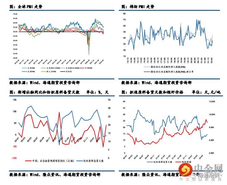 短纤价格的走势,新增社融和棉纺 PMI 却有企稳回升的迹象。