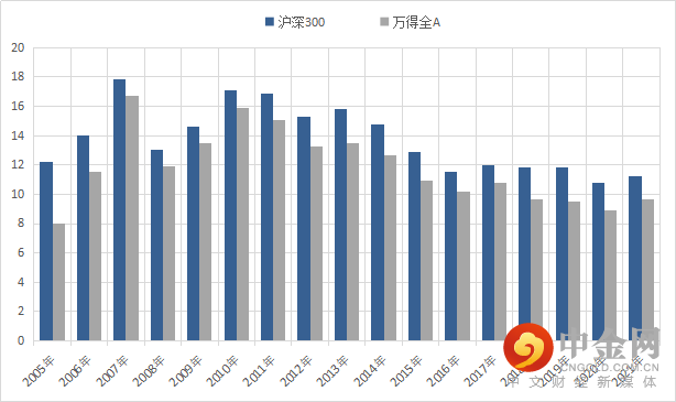 盈利方面,自2005年以来沪深300指数历年的ROE均高于万得全A,近几年虽然有所下滑但一直保持在12%左右的水平,体现出沪深300指数相对稳健的盈利能力,是A股市场蓝筹股的重要代表。