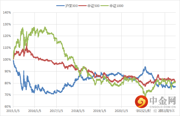 图表2:沪深300、中证500与中证1000相对万得全A超额收益对比