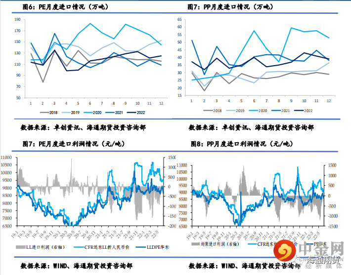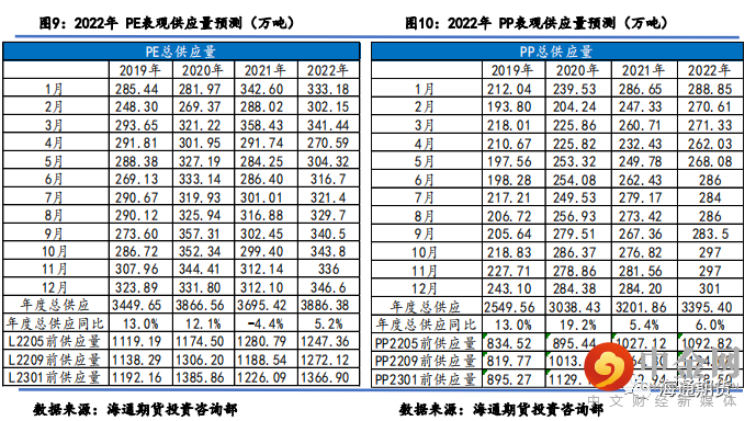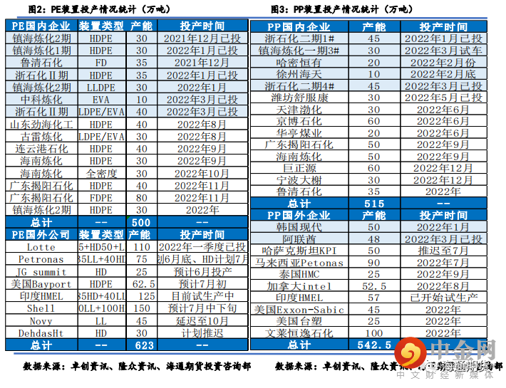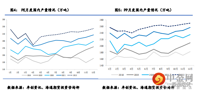2022年1-6月PE国产总量1217万吨,同比增速8.9%;PP国产总量1389.78万吨,同比增