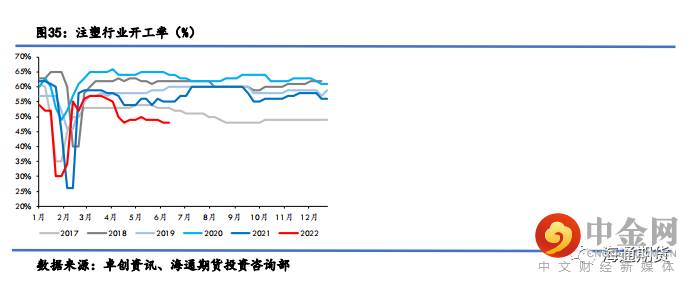 海外方面今年上半年新产能投放力度相对较弱,聚乙烯方面有Lotte的110万吨装置投