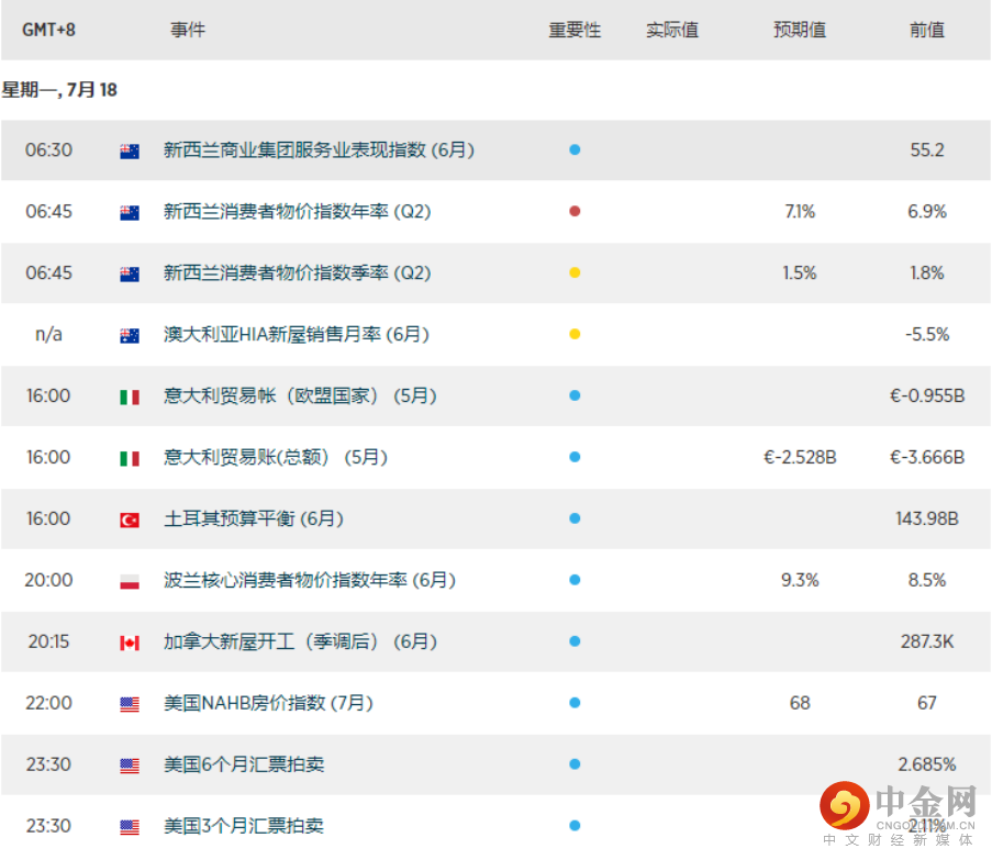 今日经济日历(标准时间+8小时)