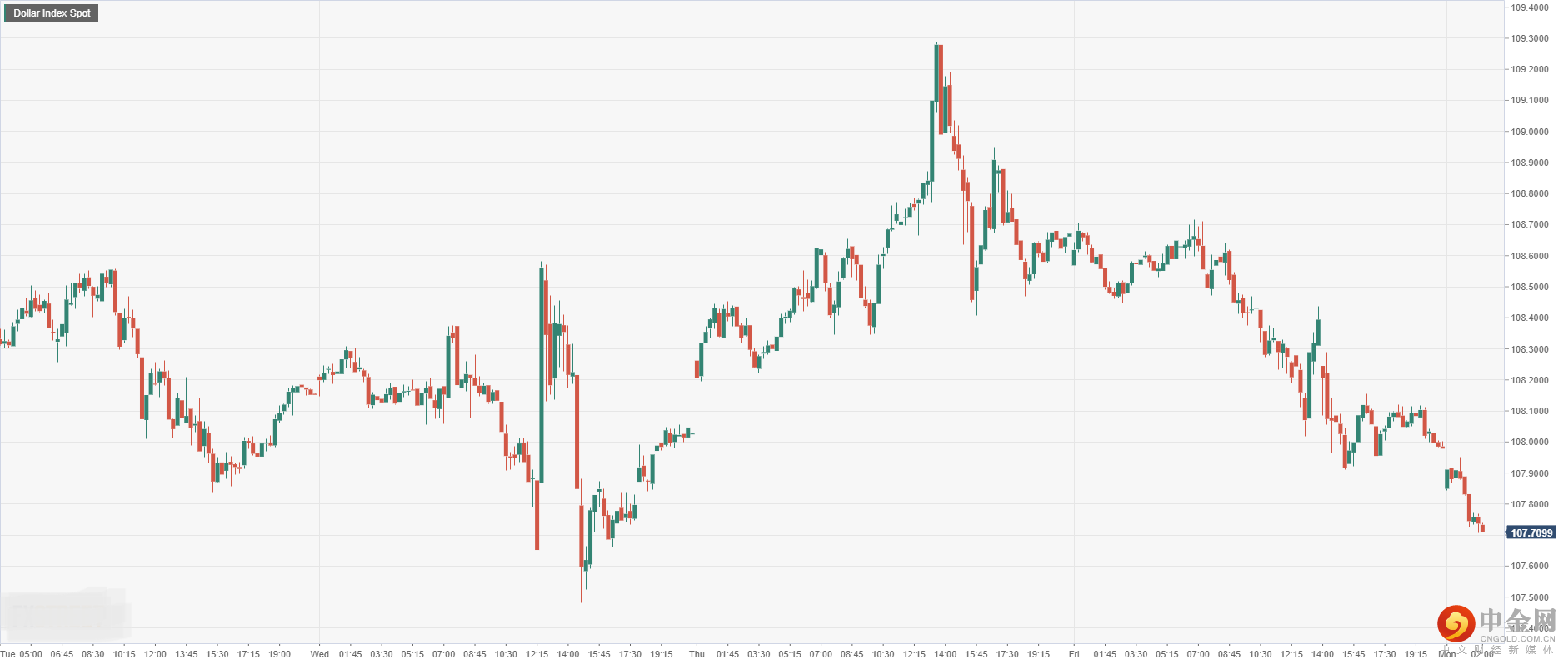 美元指数上周五收盘大幅回落后,今日开盘跌至107.70附近,尽管美元呈现下行承压疲软,但修正空间有限,短期内风险平衡仍倾向于上行。