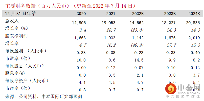 公司预计2022年上半年股东净利润将下滑