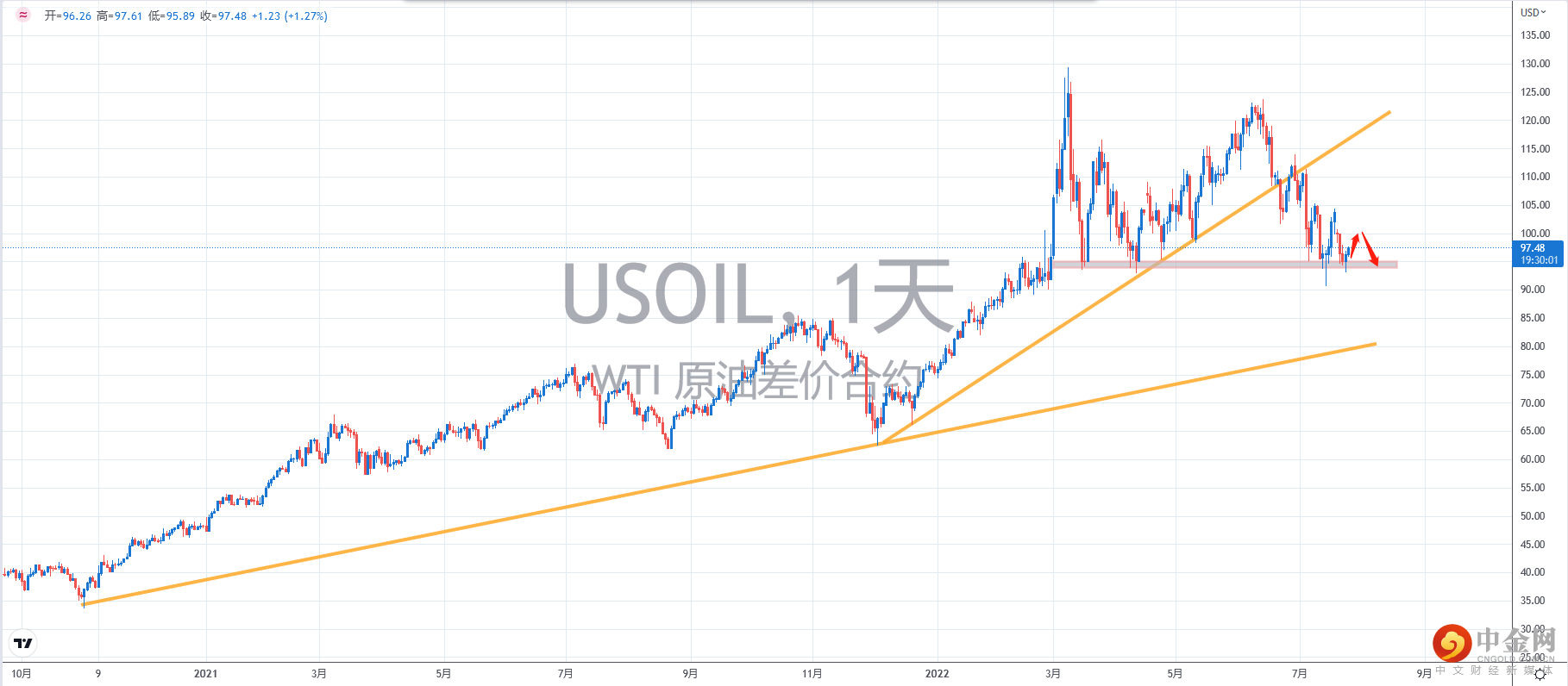 【交易策略】:持有多头合约的投资者建议短线落袋止盈,同时考虑逢高做空,目标位95美元附近,待价格跌破支撑位后可考虑直接追空,目标85美元附近。