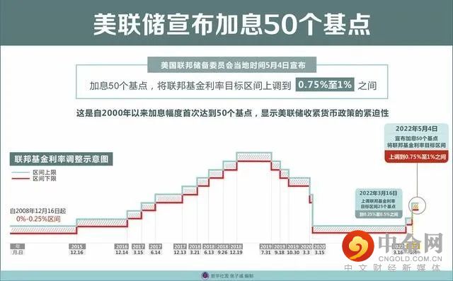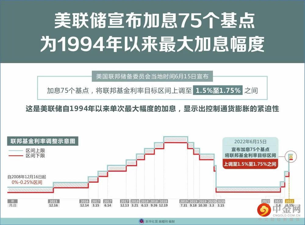2022年以来美联储正式开启加息模式,加息次数不断增加,加息幅度也不断加大,从3月16日加息25个基点起,5月4日加息50个基点,6月15日加息75个基点(如图1-1、图1-2所示)。半年时间,美国联邦基金利率就从0%-0.25%区间提升至1.5%-1.75%区间,累积加息幅度达到150个基点。